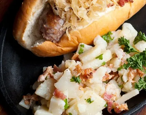 On aika sytyttää grilli! Tämä herkullinen kaksoisolutkakara ja saksalaistyylinen perunasalaatti yhdistää kaksi klassikkoa, jotka sopivat täydellisesti kesäruokiin tai syksyn jalkapalloon.