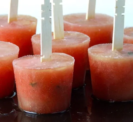 Kokeile näitä virkistäviä vesimeloniolutmehupaloja, jotka on valmistettu 21st Módosítás Brewery's Hell- tai High Watermelon Wheat -limestä ja mintusta.
